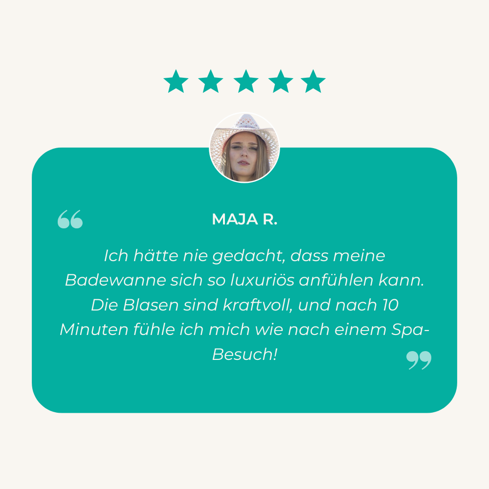 Ein Whirlpool kann mehrere Tausend Euro kosten und viel Platz einnehmen – mit AquaLuxe für die Badewanne genießt du dasselbe entspannende Erlebnis für einen Bruchteil des Preises. Schluss mit überfüllten Thermen oder stressigen Massageterminen – hol dir dein eigenes Home-Spa nach Hause!